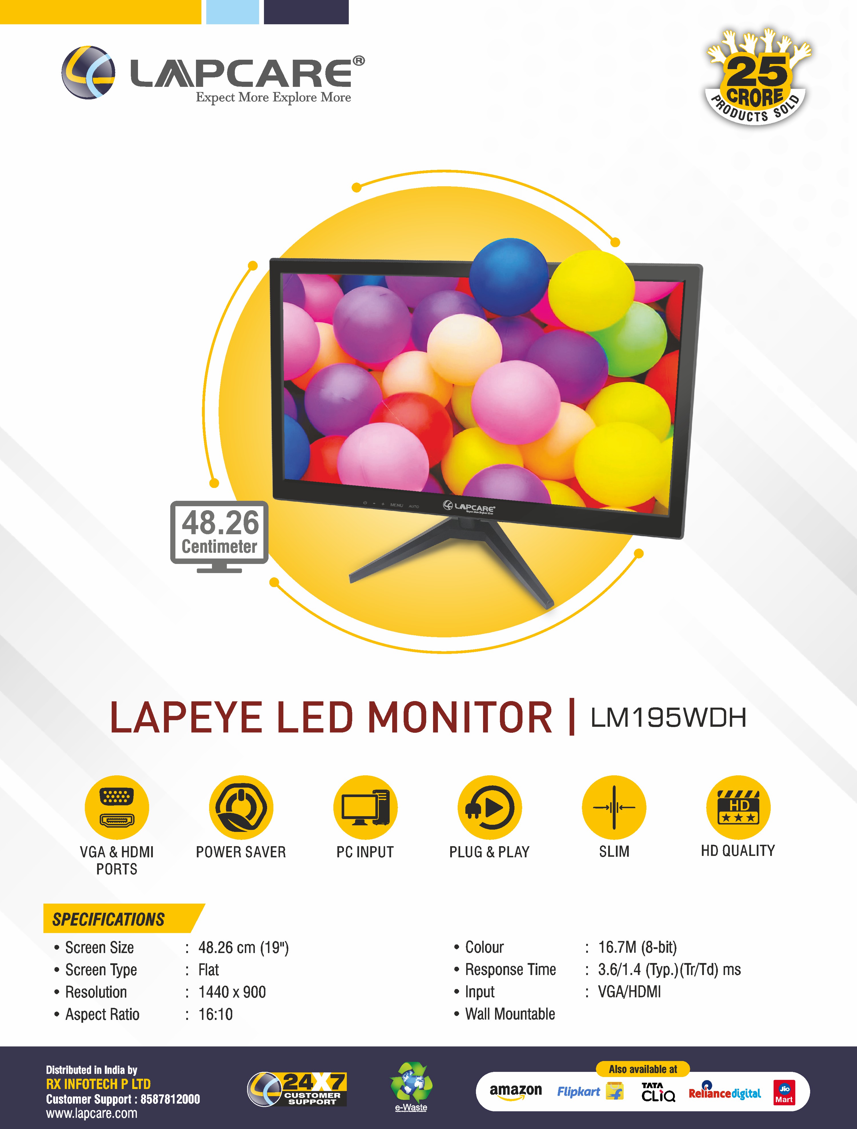 FHD Quality (1440 x 900): The monitor provides Full HD resolution, which means it has a display with 1440 pixels horizontally and 900 pixels vertically. This ensures crisp and detailed images with refresh rate 60Hz