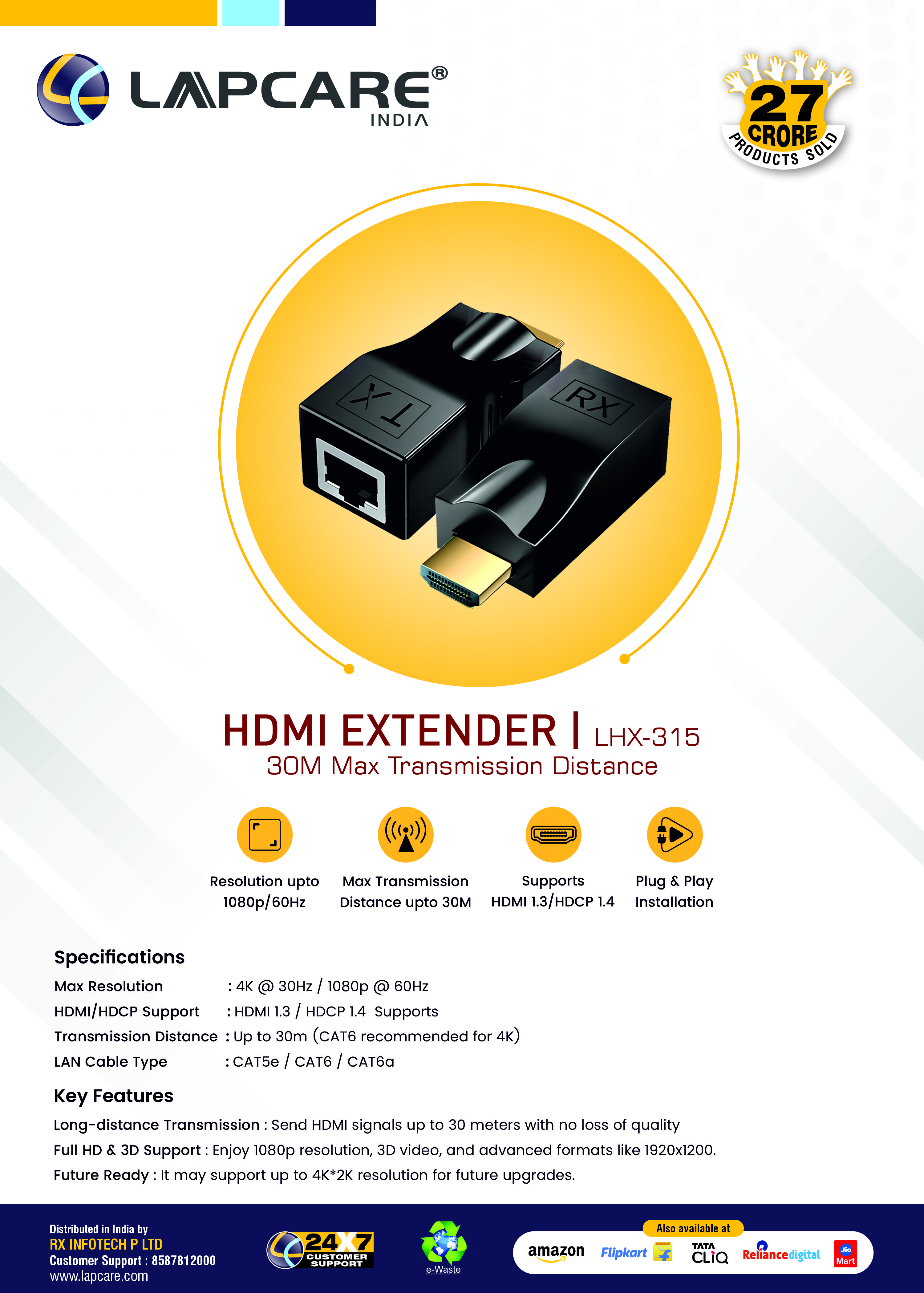 - Long-distance HDMI signal transmission up to 30 meters with zero quality loss