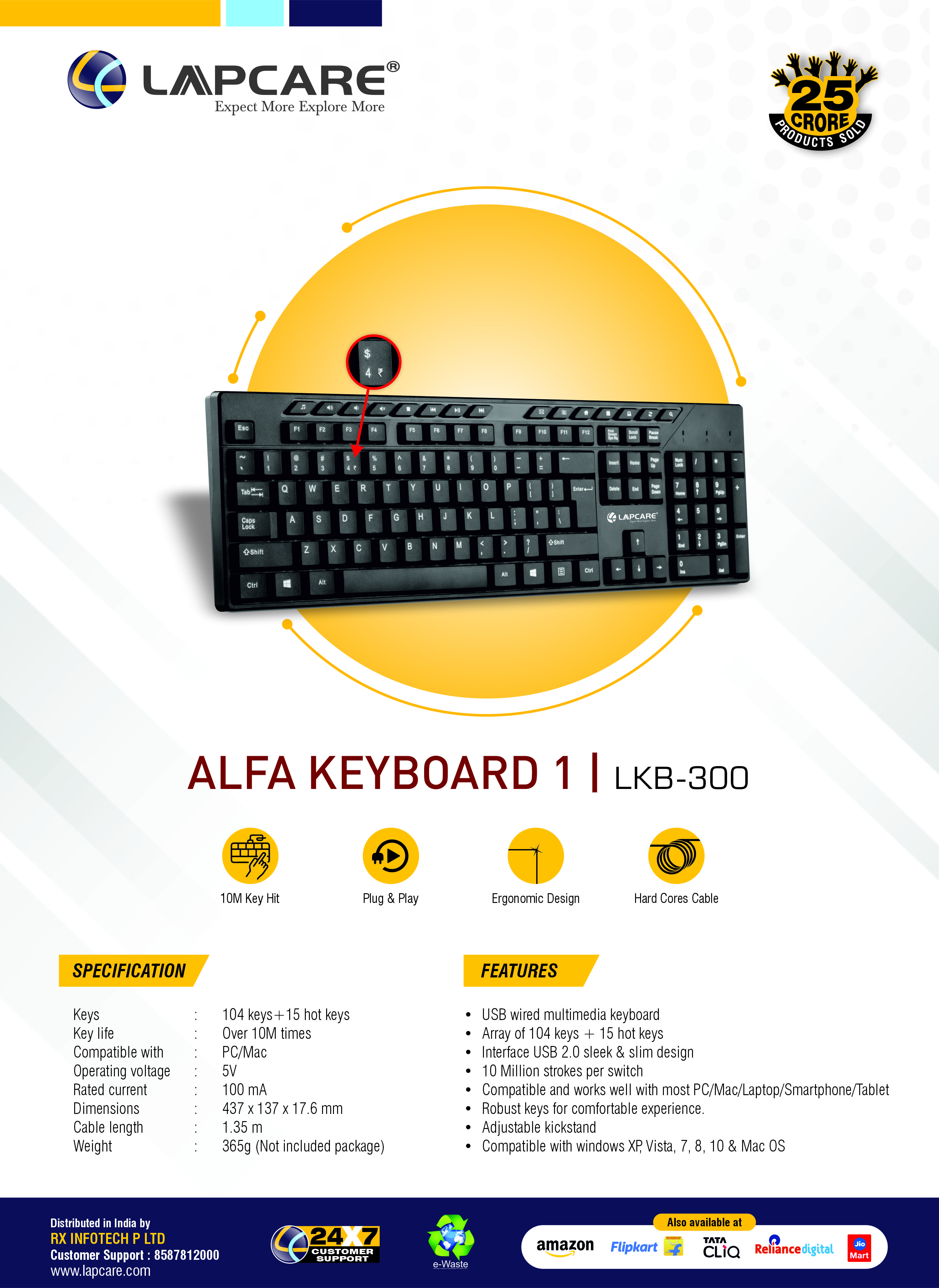 15 Multimedia Hotkeys | Sleek & Slim Profile | 10 Million Keystrokes | Adjustable Kickstand | 1.35m Cable Length