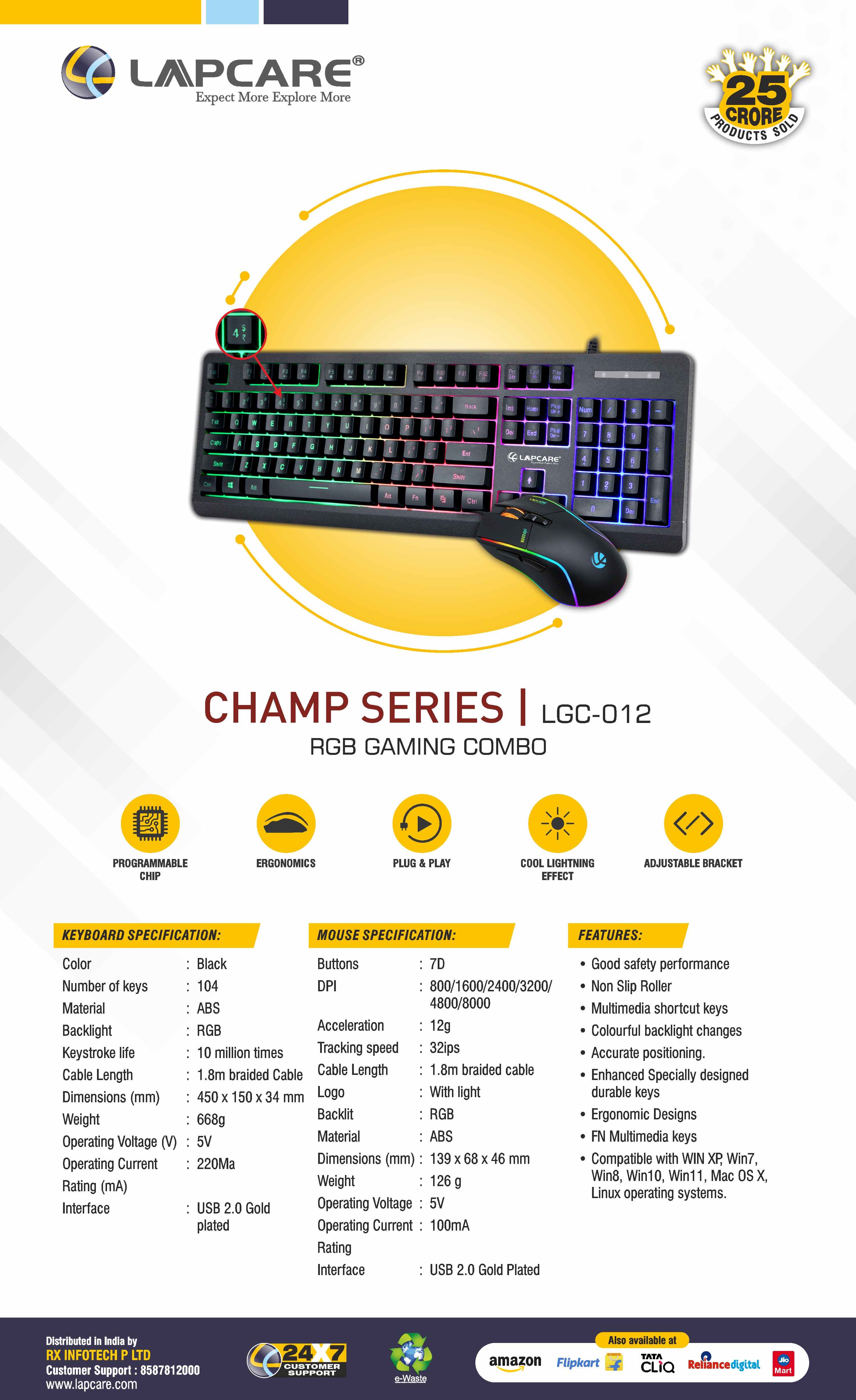 104 Keys Keyboards and 7 Buttons Mouse