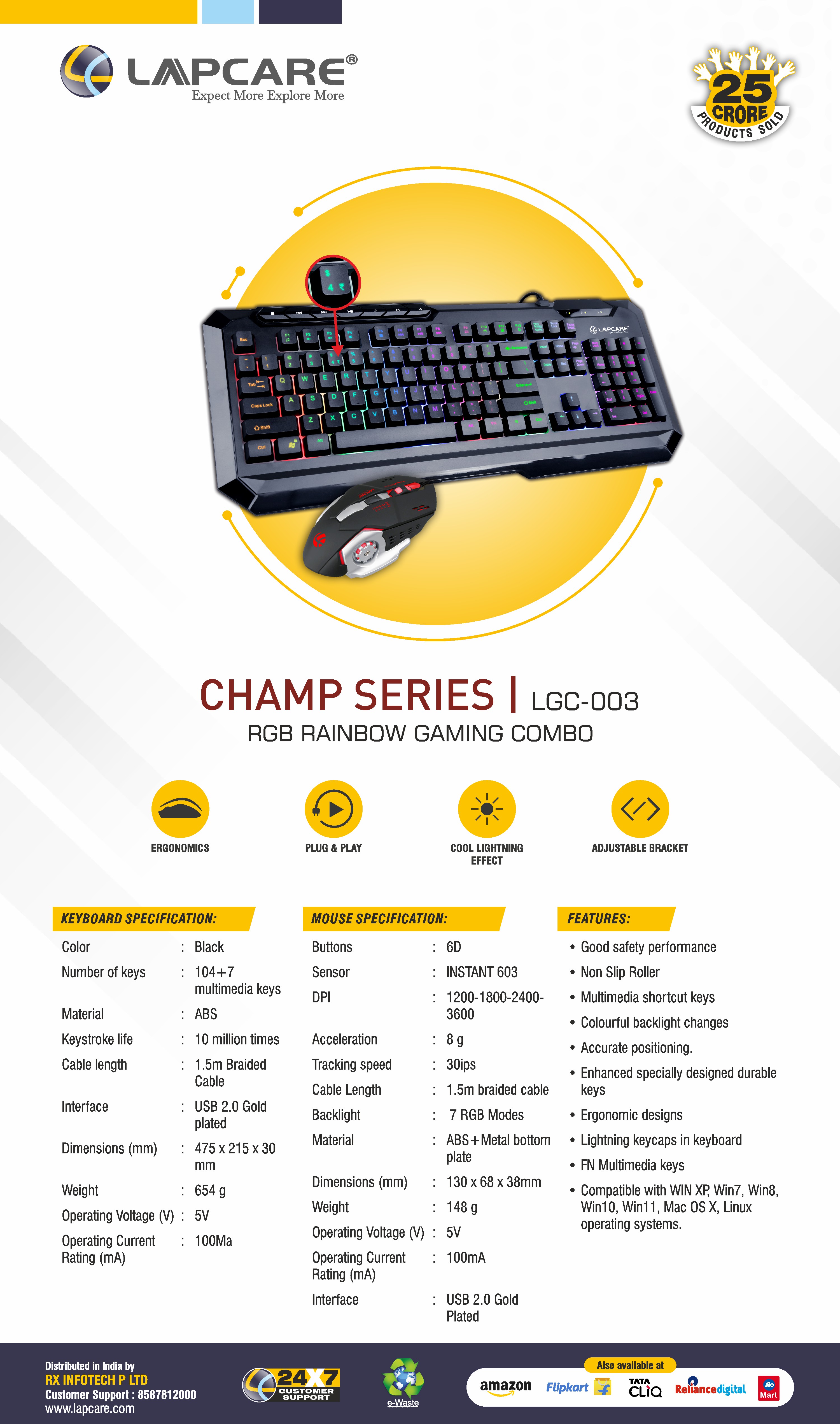 3600 DPI | Multimedia Hotkeys | 7 RGB Modes | Multi Color LED | 1.5m Durable Cable