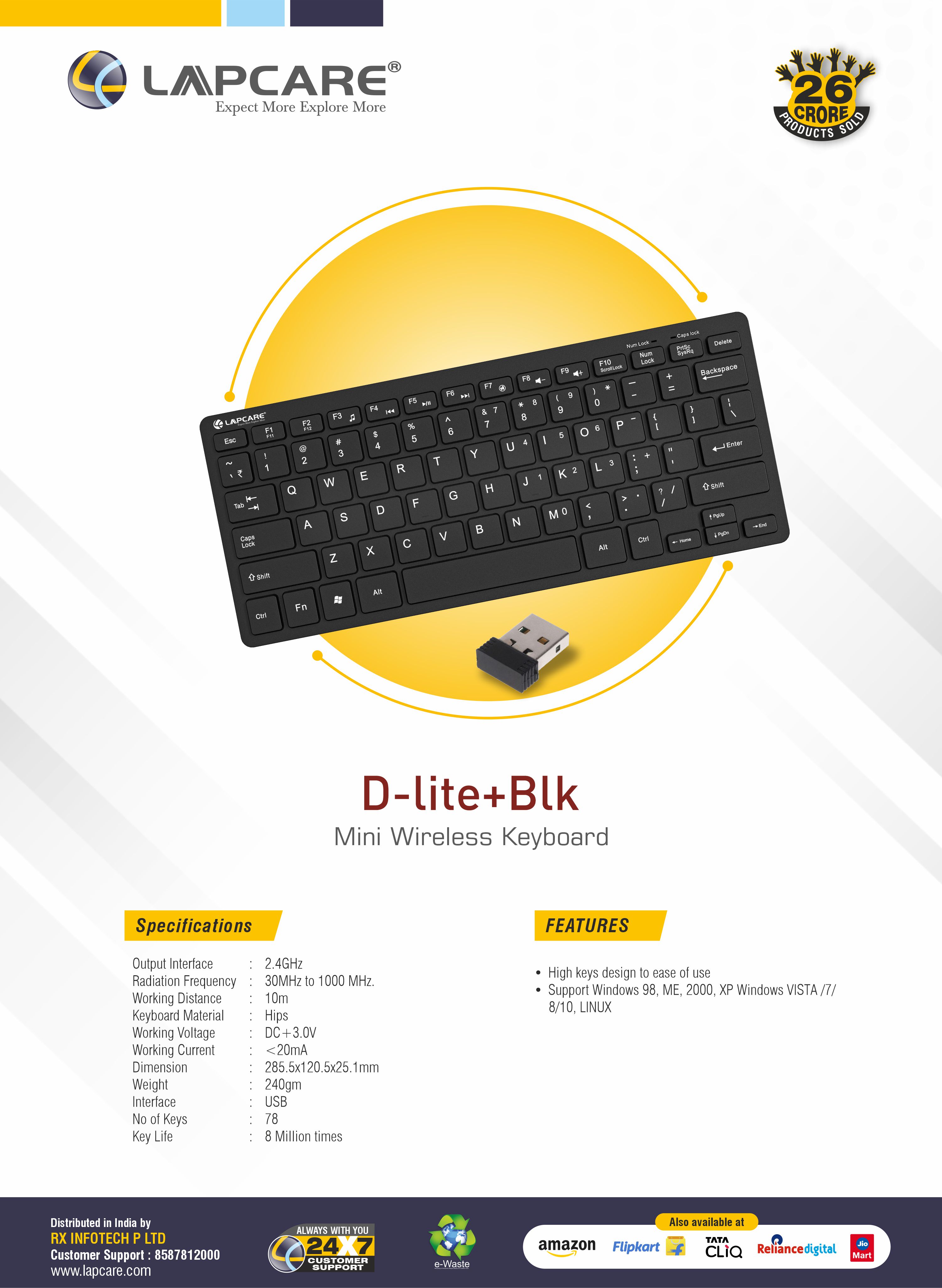 - Key life: 8 million times