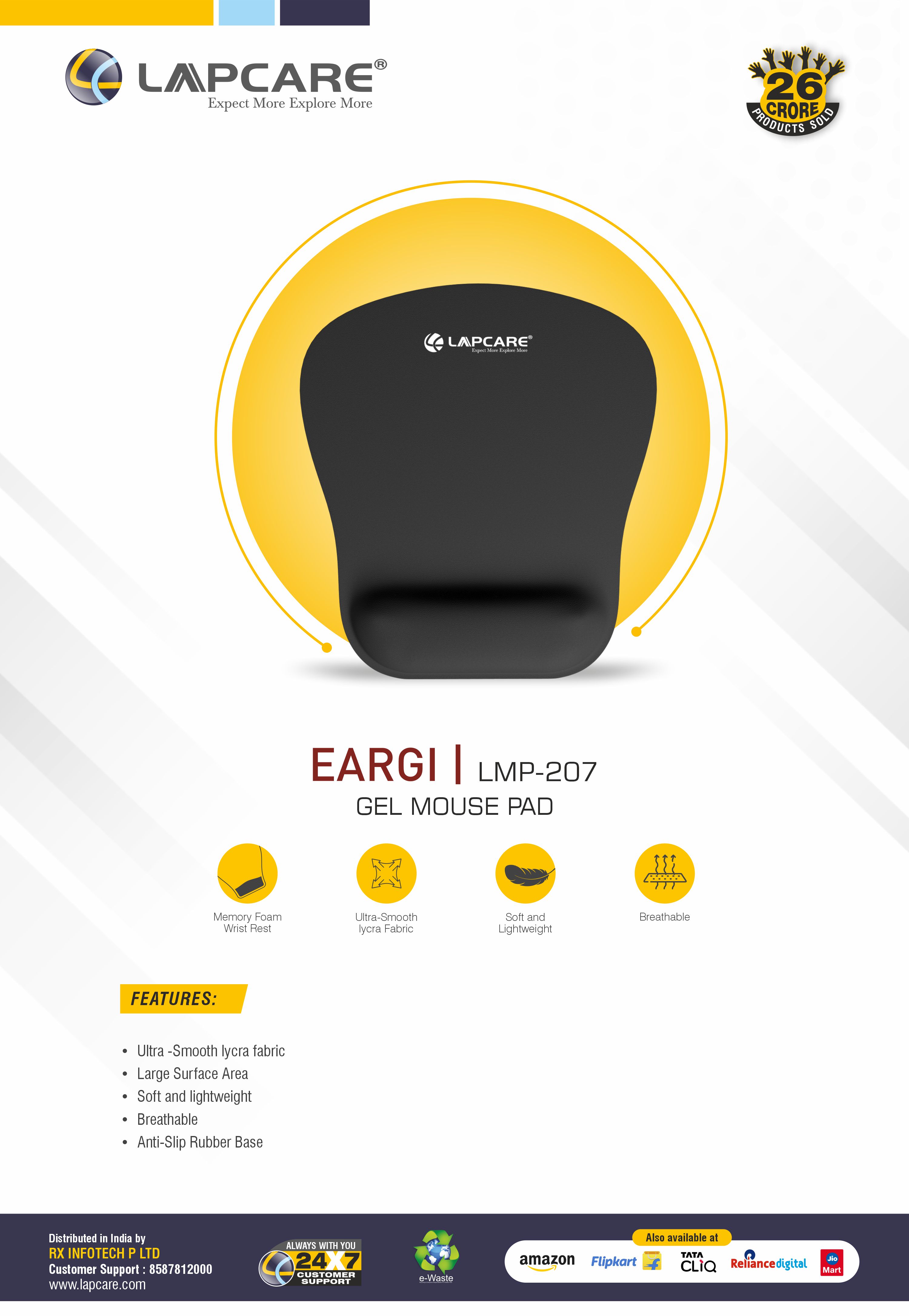 Gel Support | Wrist Comfort | Smooth Lycra Surface | Breathable Fabric | Anti-Slip Rubber Base