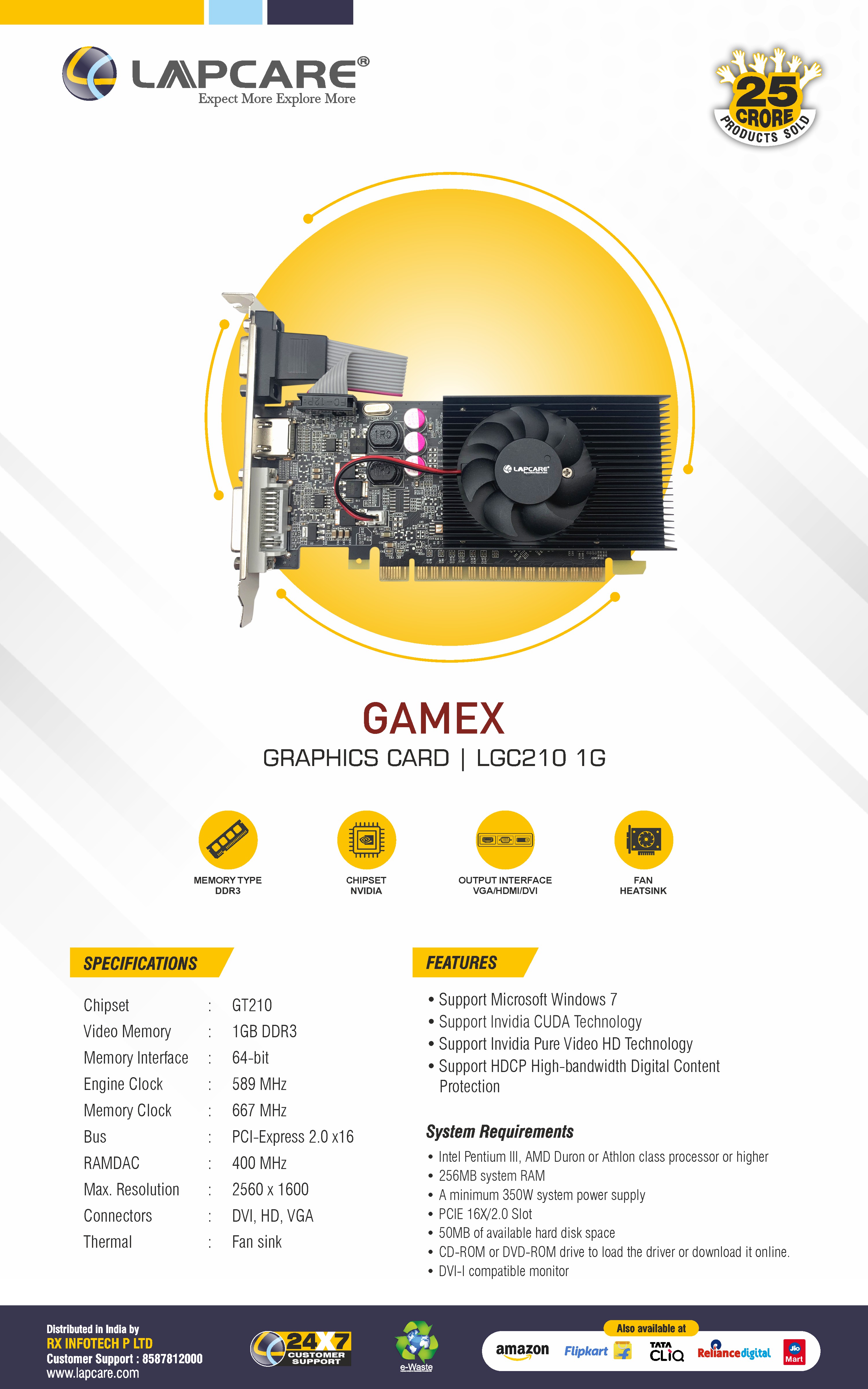 NVIDIA CUDA Technology | NVIDIA GT210 chipset | 1GB DDR3 | Triple Display Support | Silent Cooling
