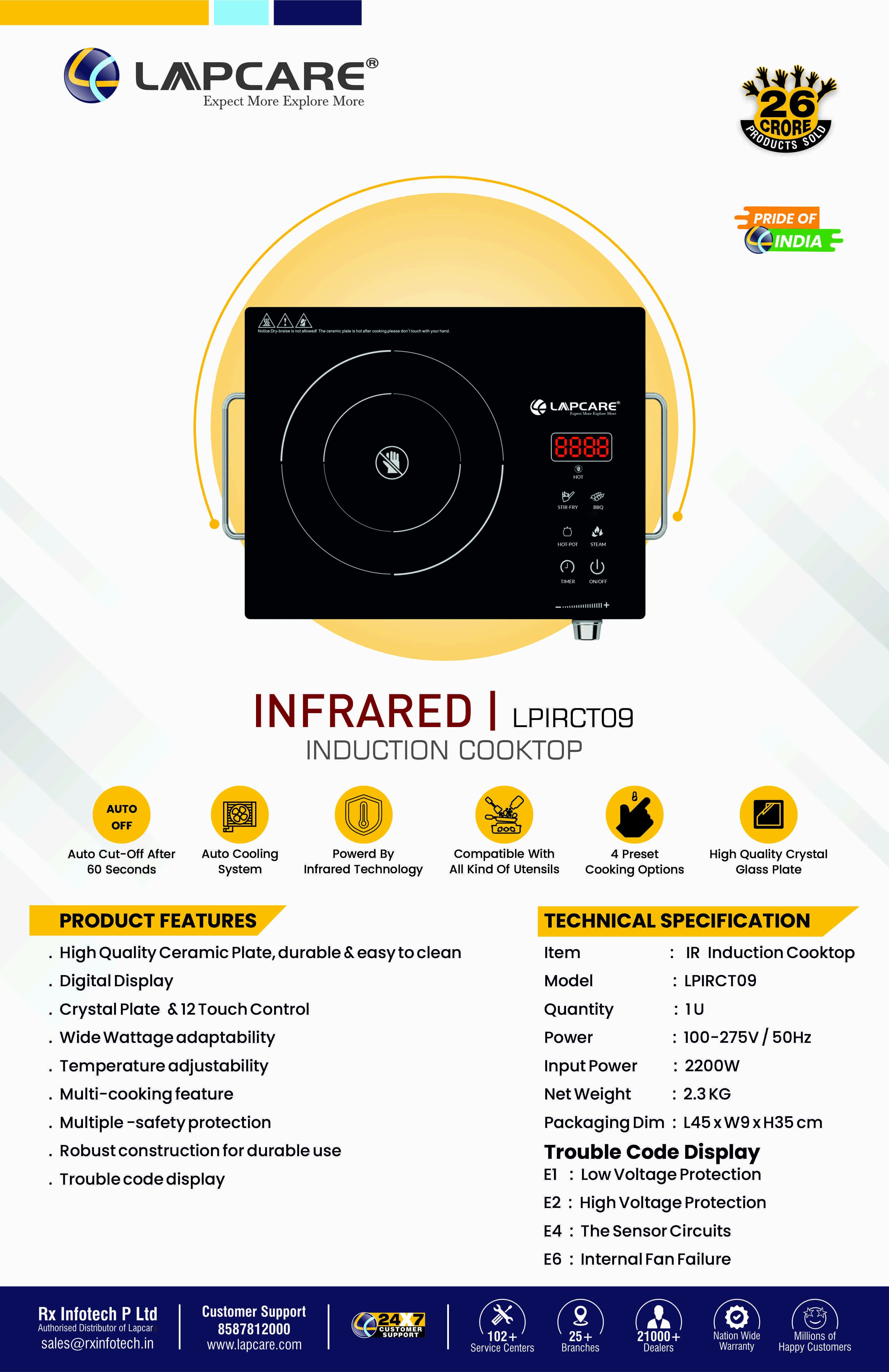 2200W High Power | 12 Touch Control | Fast Heating | Ceramic Plate | Easy Control