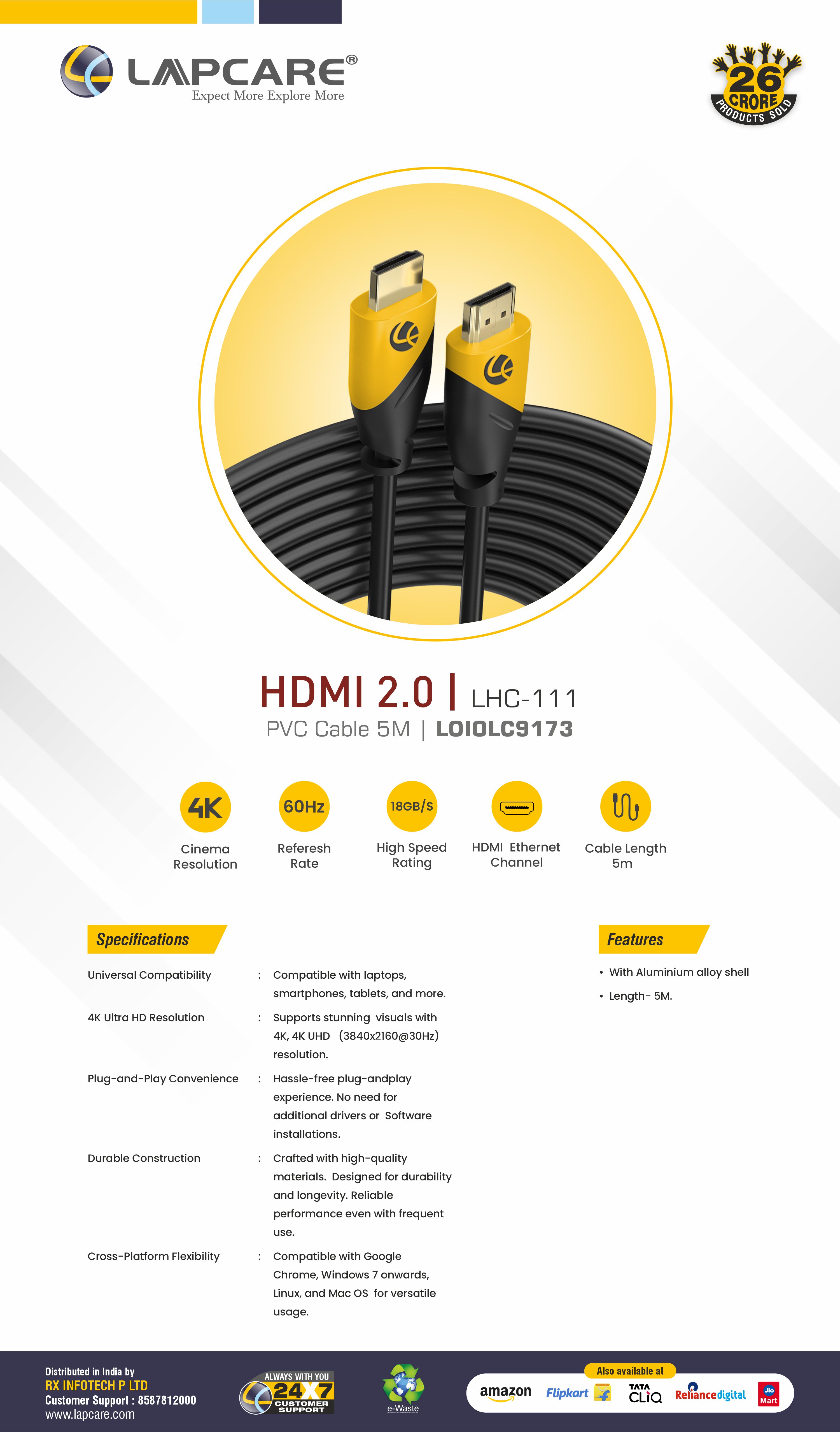 4K Ultra HD Support | 5-Meter Extended Reach | High-Speed 18Gbps | Durable PVC Jacket | Audio Return Channel (ARC)
