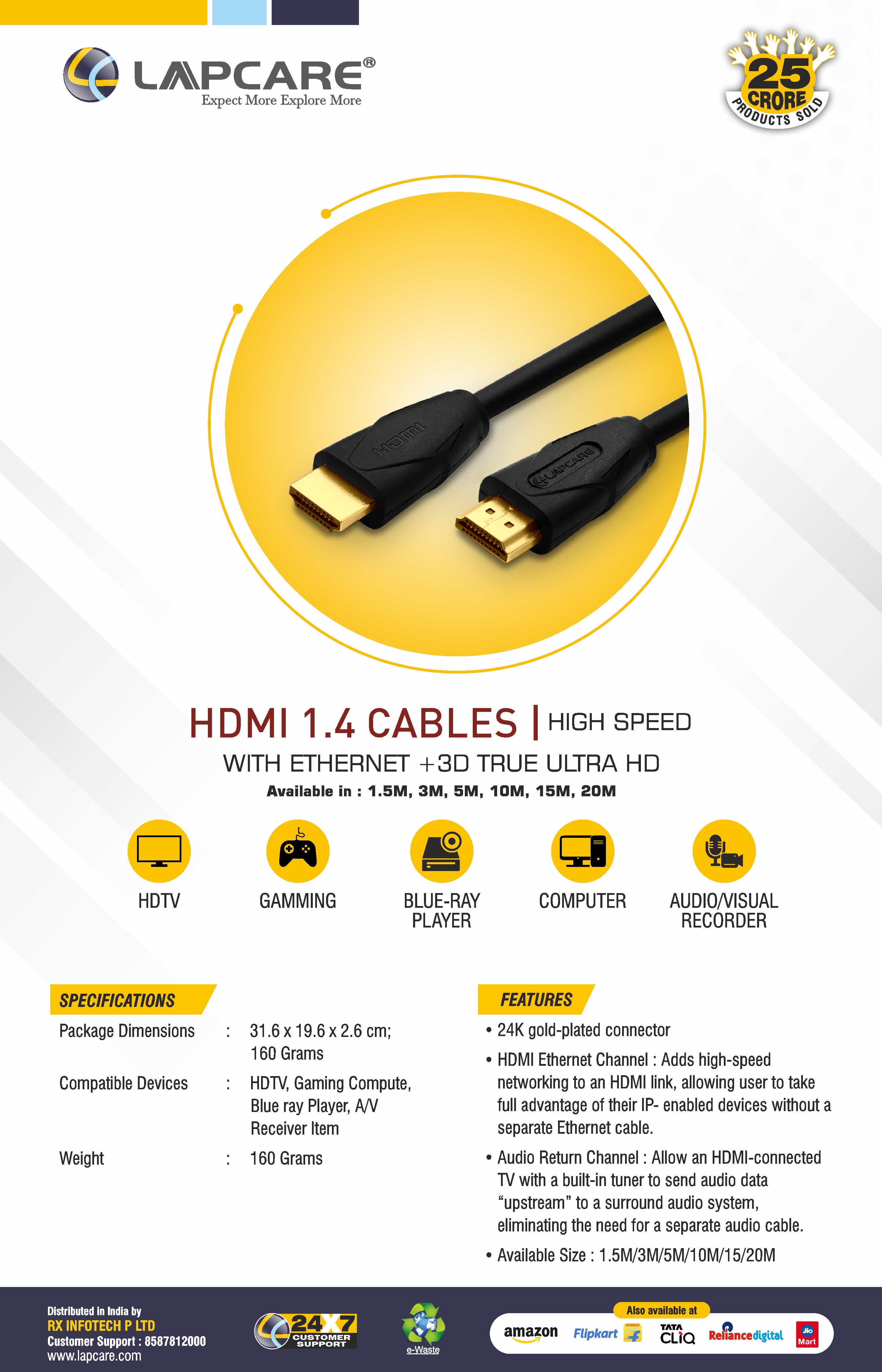 4K & 3D Support | 10.2Gbps High Speed | HDMI v1.4 Support | Gold Plated | 10 Meter Length