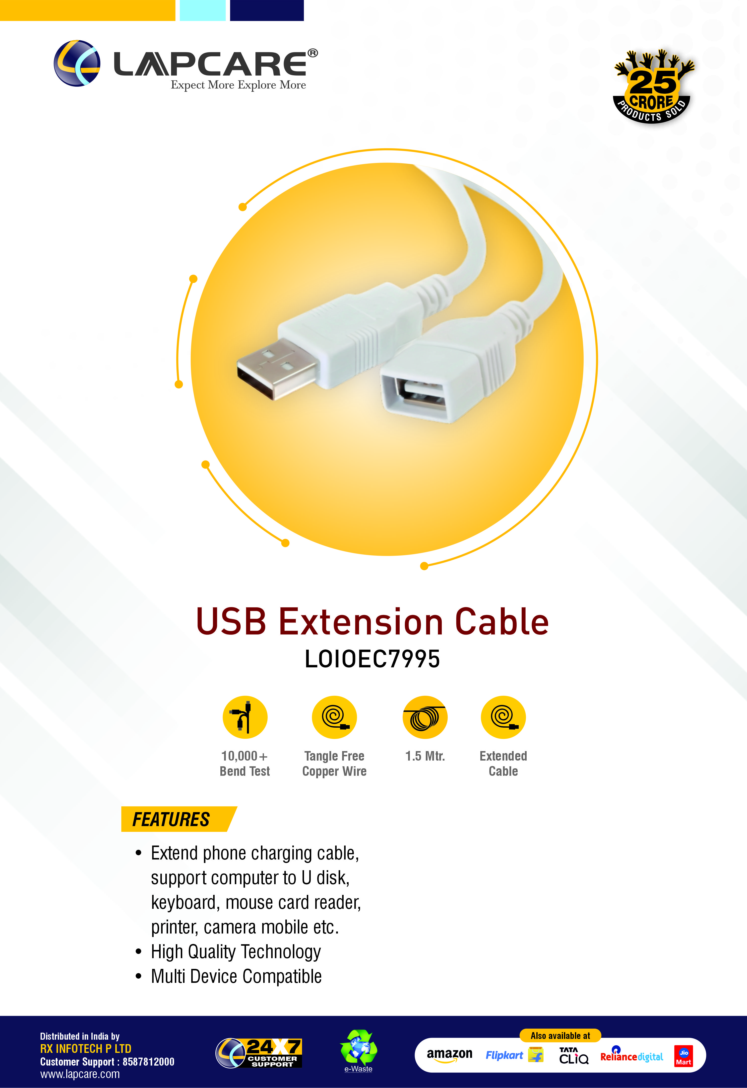 One of the key features of Lapcare USB extension cables is their durability.