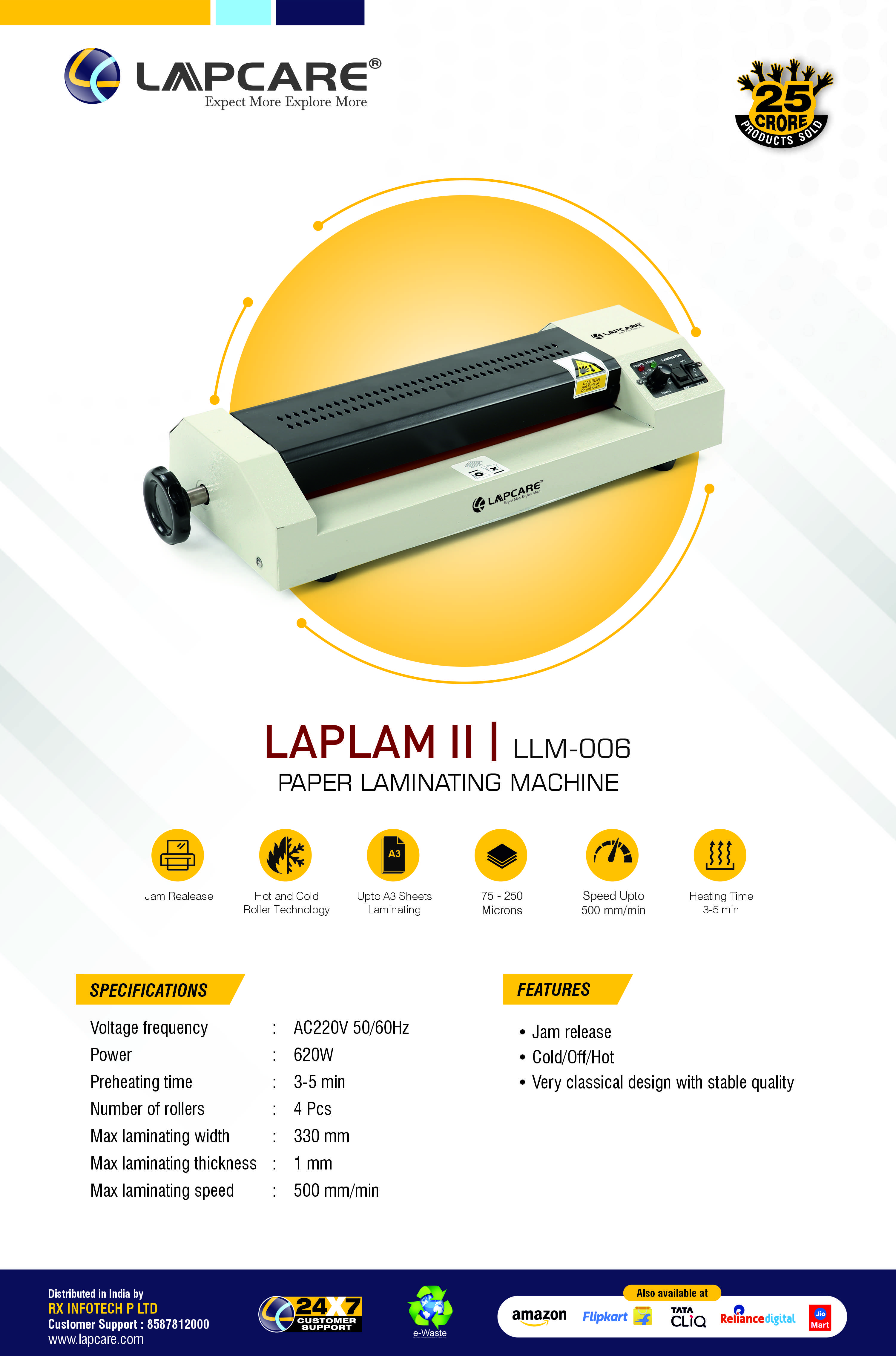 Heavy-Duty 4-Roller | A3 Size Support | Metal Body | 500mm/min Speed | Jam Release button
