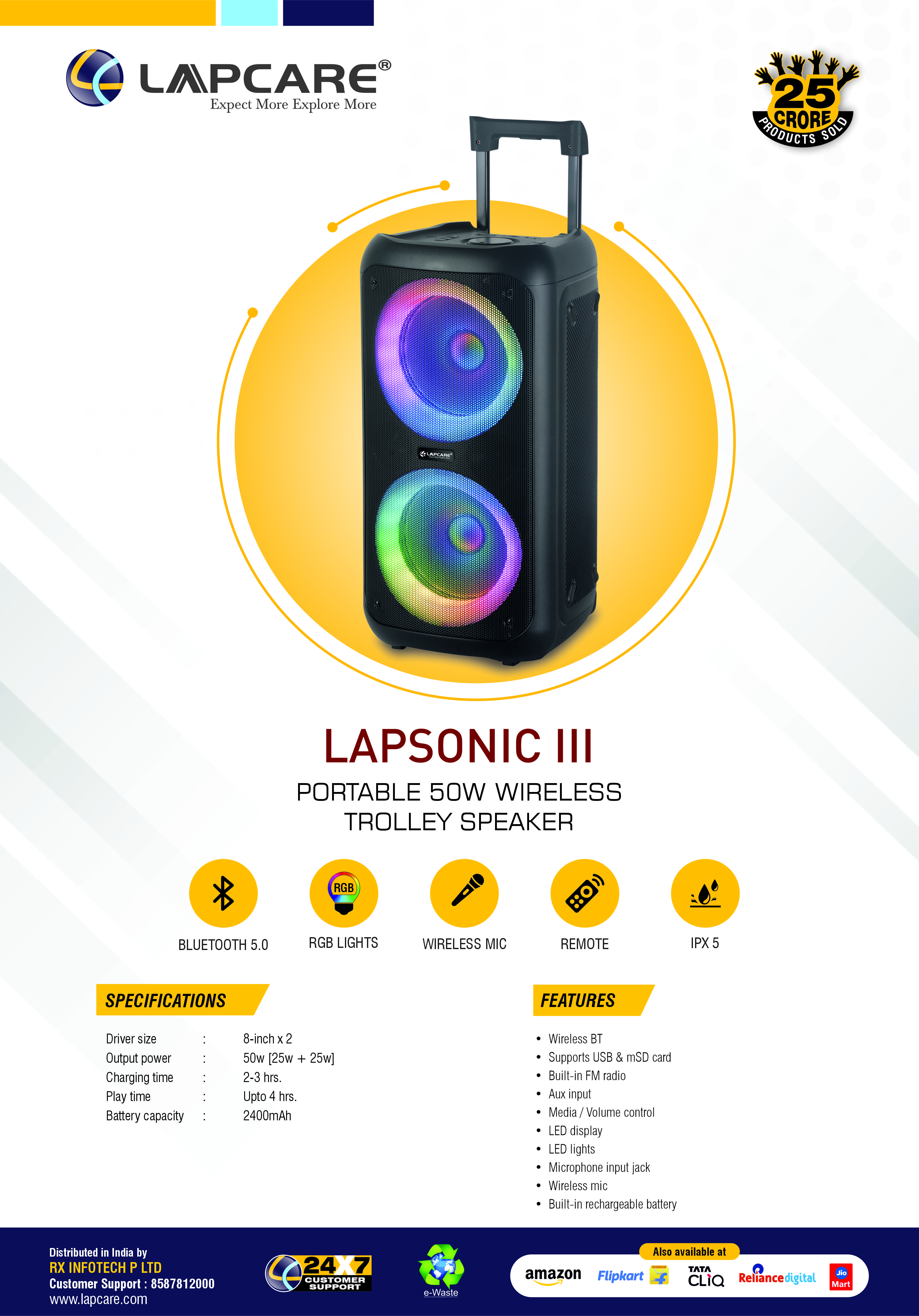 50W | 4hrs | Dual Full rangedrivers | Wireless Mic | Multiple Connectivity