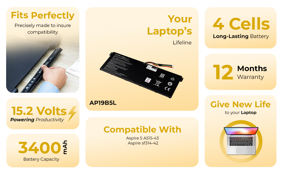 Laptop Compatible Battery For Acer Aspire 5 A515-43 (AP19B5L)