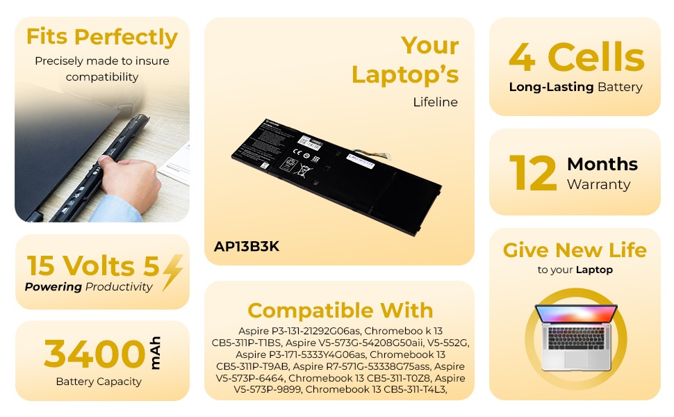 Laptop Compatible Battery For Acer Aspire AP13B3K V5-572 Ultrabook 4C (AP13B3K)