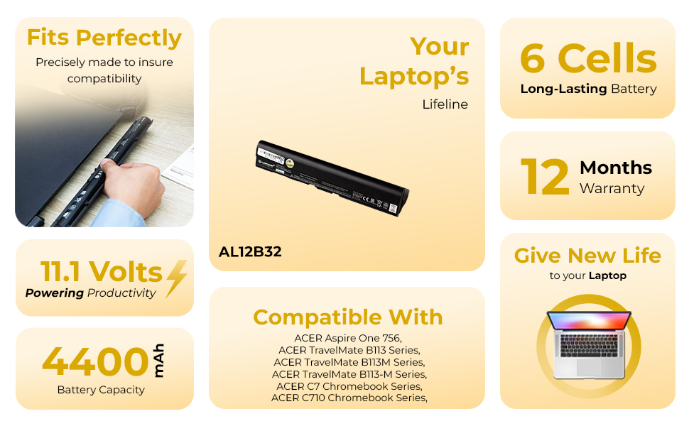 | Compatible with | ACER Aspire One 756, ACER TravelMate B113 Series, ACER TravelMate B113M Series, ACER TravelMate B113-M Series, ACER C7 Chromebook Series, ACER C710 Chromebook Series, ACER Aspire One V5-171 Series, ACER Aspire One 725 Series, |
