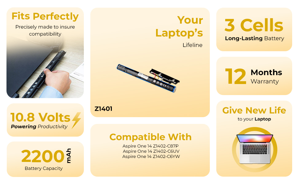 Compatible with | Aspire One 14 Z1402-C87P Aspire One 14 Z1402-C6UV Aspire One 14 Z1402-C6YW |