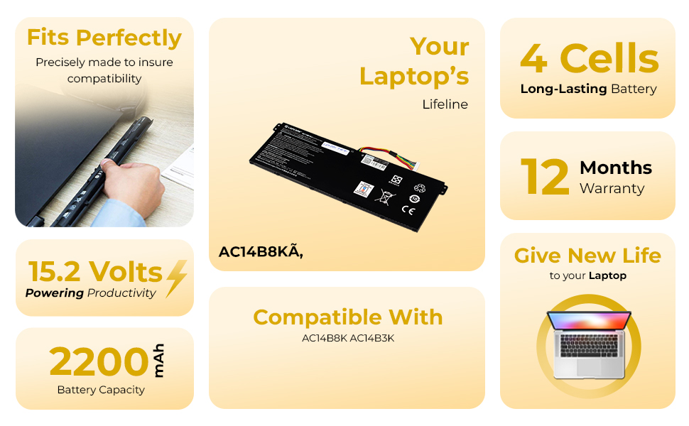 Laptop Compatible Battery For Aspire V3-111 4C (AC14B8K)