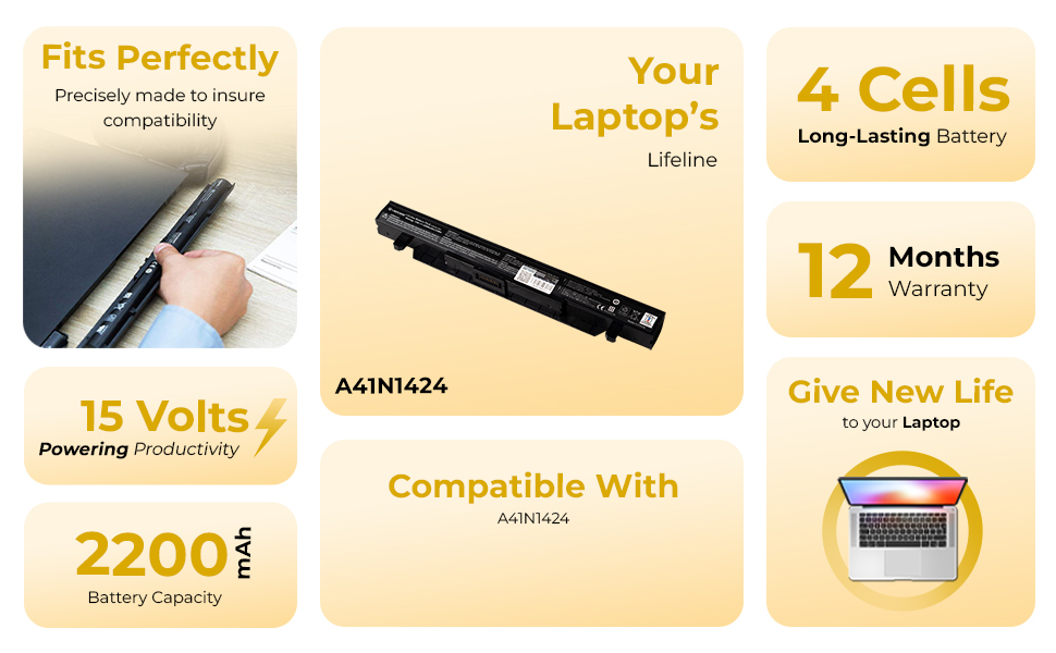 Laptop Compatible Battery For Asus Rog GL552, ZX50V, JX4200, JX4720, FX-Plus, FX-Pro (A41N1424)