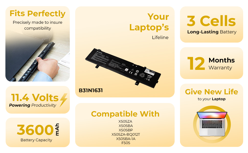 Laptop Compatible Battery For Asus VivoBook X505A,S505BA, F505ZA (B31N1631)