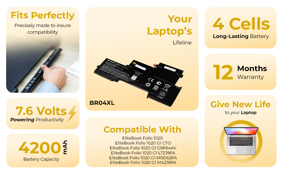 Laptop Compatible Battery For HP Elitebook 1020 G1/1030 G1 (BR04XL)