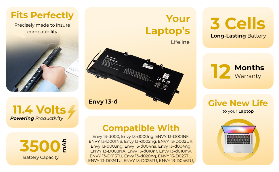 Compatible with | Envy 13-d000, Envy 13-d000ng, ENVY 13-D001NF, ENVY 13-D001NS, Envy 13-d002ng, ENVY 13-D002UR, Envy 13-d003ng, Envy 13-d004na, Envy 13-d004ng, ENVY 13-D008NA, Envy 13-d010nr, Envy 13-d010nw, ENVY 13-D015TU, Envy 13-d020ng, ENVY 13-D023TU, ENVY 13-D024TU, ENVY 13-D025TU, ENVY 13-D046TU, ENVY 13-D051TU, ENVY 13-d053s3, ENVY 13-D053SA, ENVY 13-d061sa, Envy 13-d100, Envy 13-d102ng, Envy 13-d103TU, Envy 13-d110TU, Envy 13-d131TU, ENVY 13-DOO8TU, ENVY 13T-D000 |