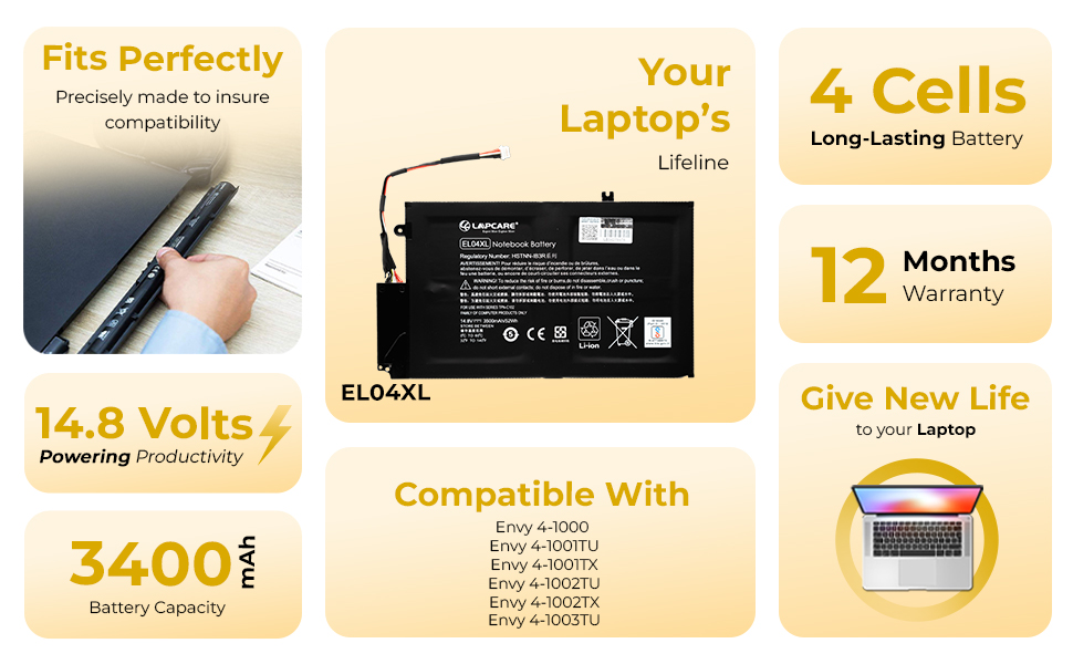 Laptop Compatible Battery For HP Envy TouchSmart 4, (EL04XL) 4C