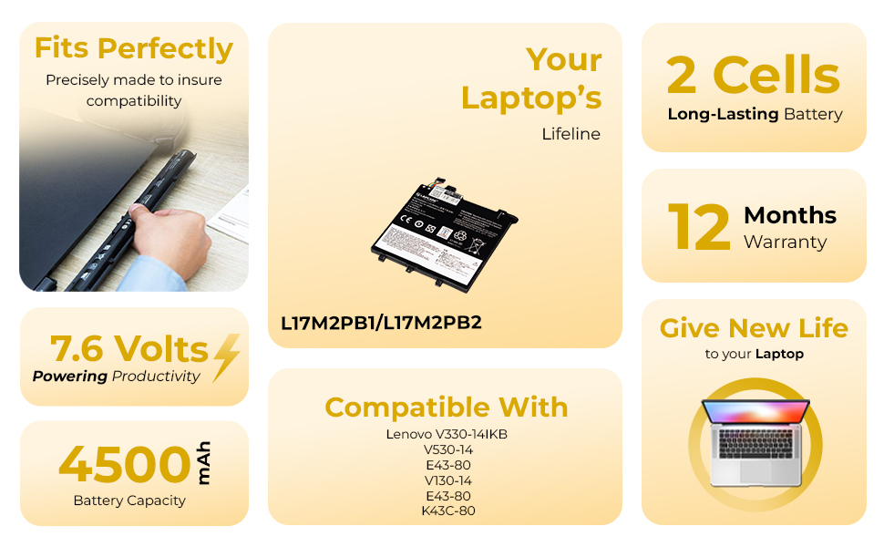 Laptop Compatible Battery For Lenovo V130-14IKB (L17M2PB1/L17M2PB2)