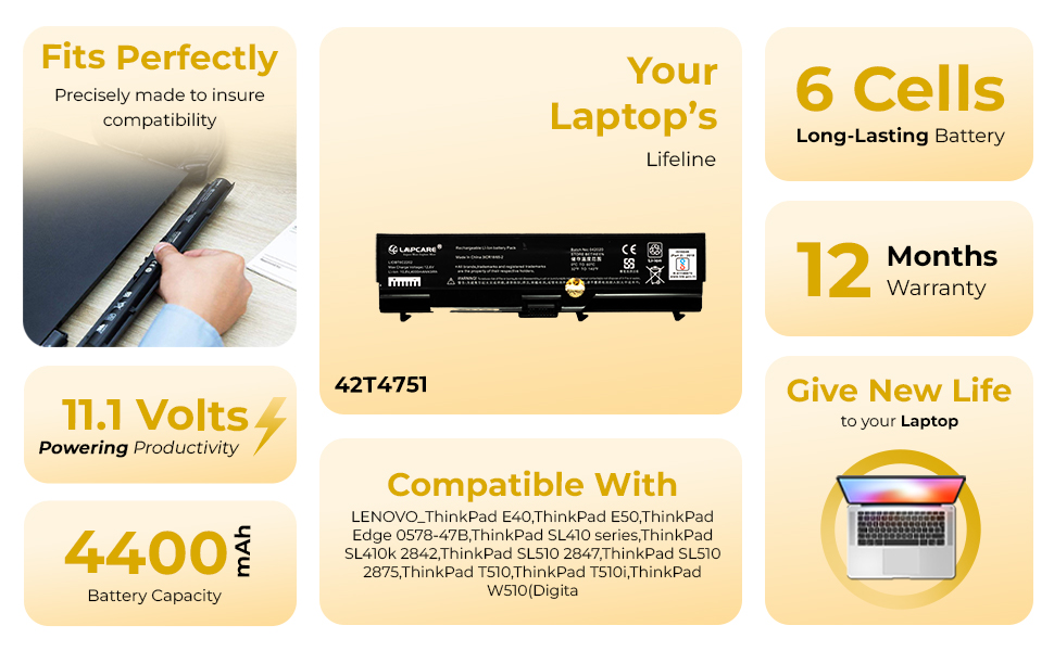 Laptop Compatible Battery For T410/SL410/SL510 6C