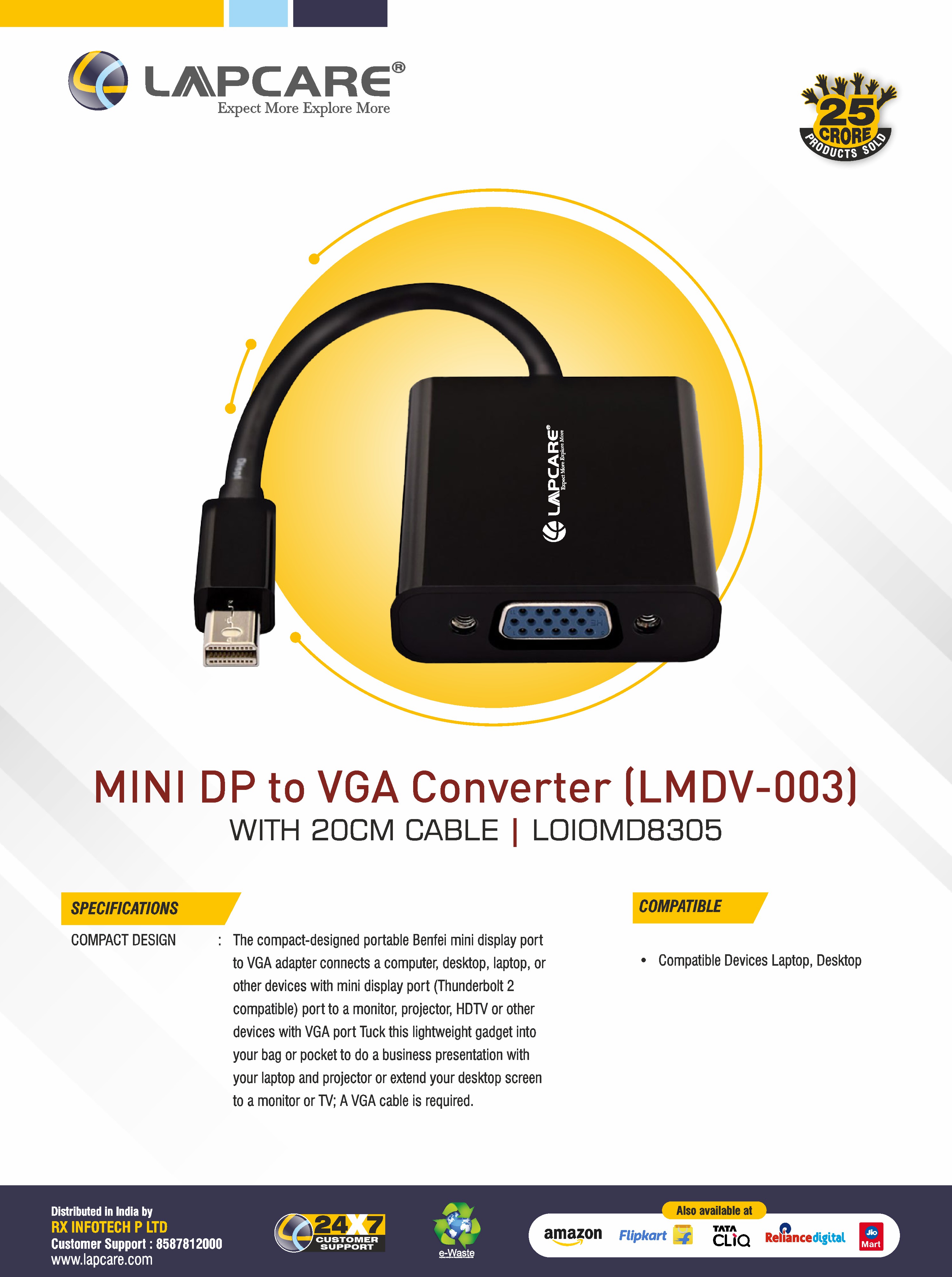 1080p Full HD Support | Thuderbolt port compatible | Plug & Play | Compact 20cm Cable | Wide Support Devices