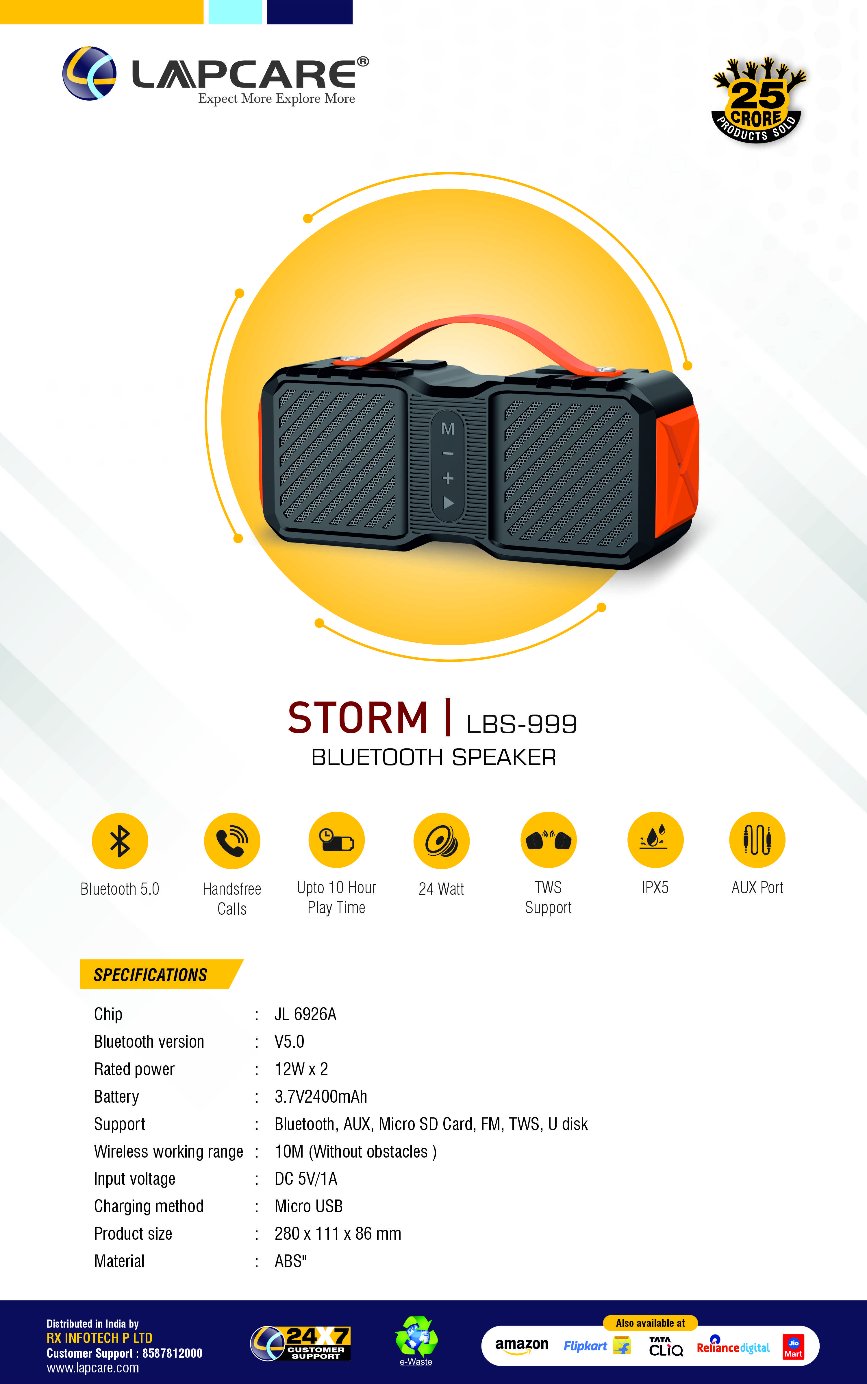 24W | TWS Mode | 10hrs | IPX5 Water Proof | Easy Carry