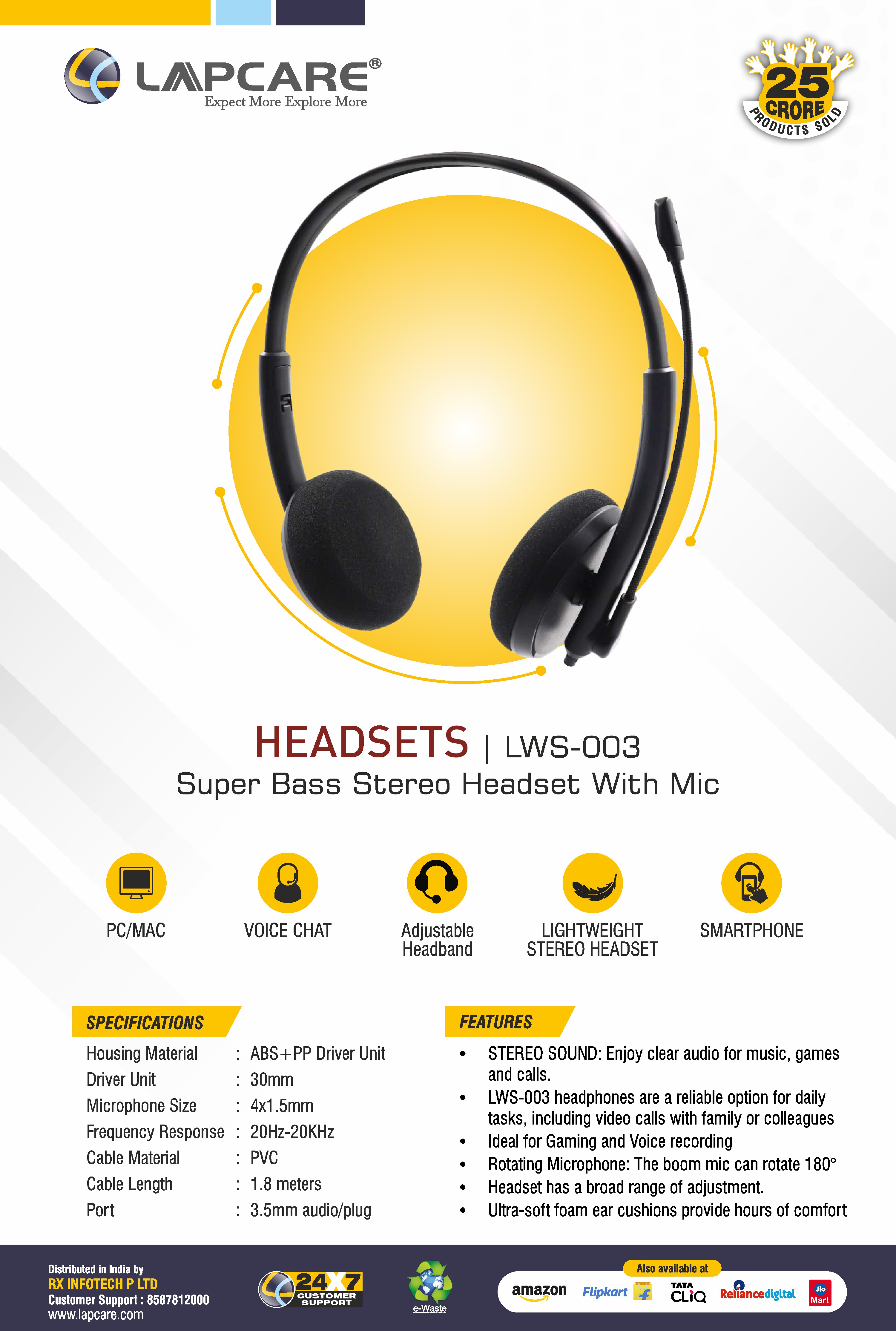 Compact Office Use | Dual Connector | Adjustable Mic | Stereo Sound | Ultra-soft foam ear cushions