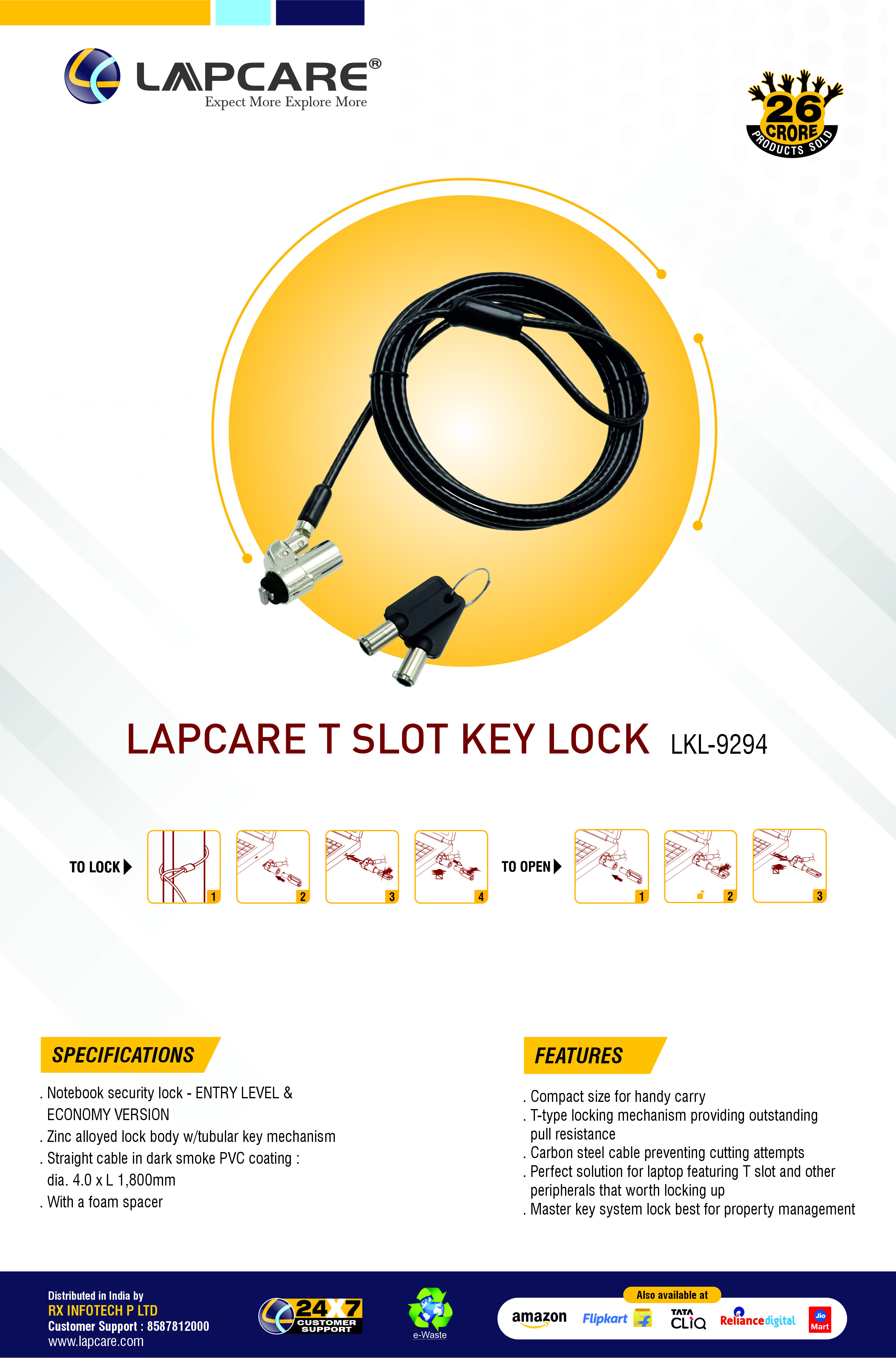 1.8m Steel Cable | Zinc Alloy Body | Carbon Steel Cable | Master key Support | Compact