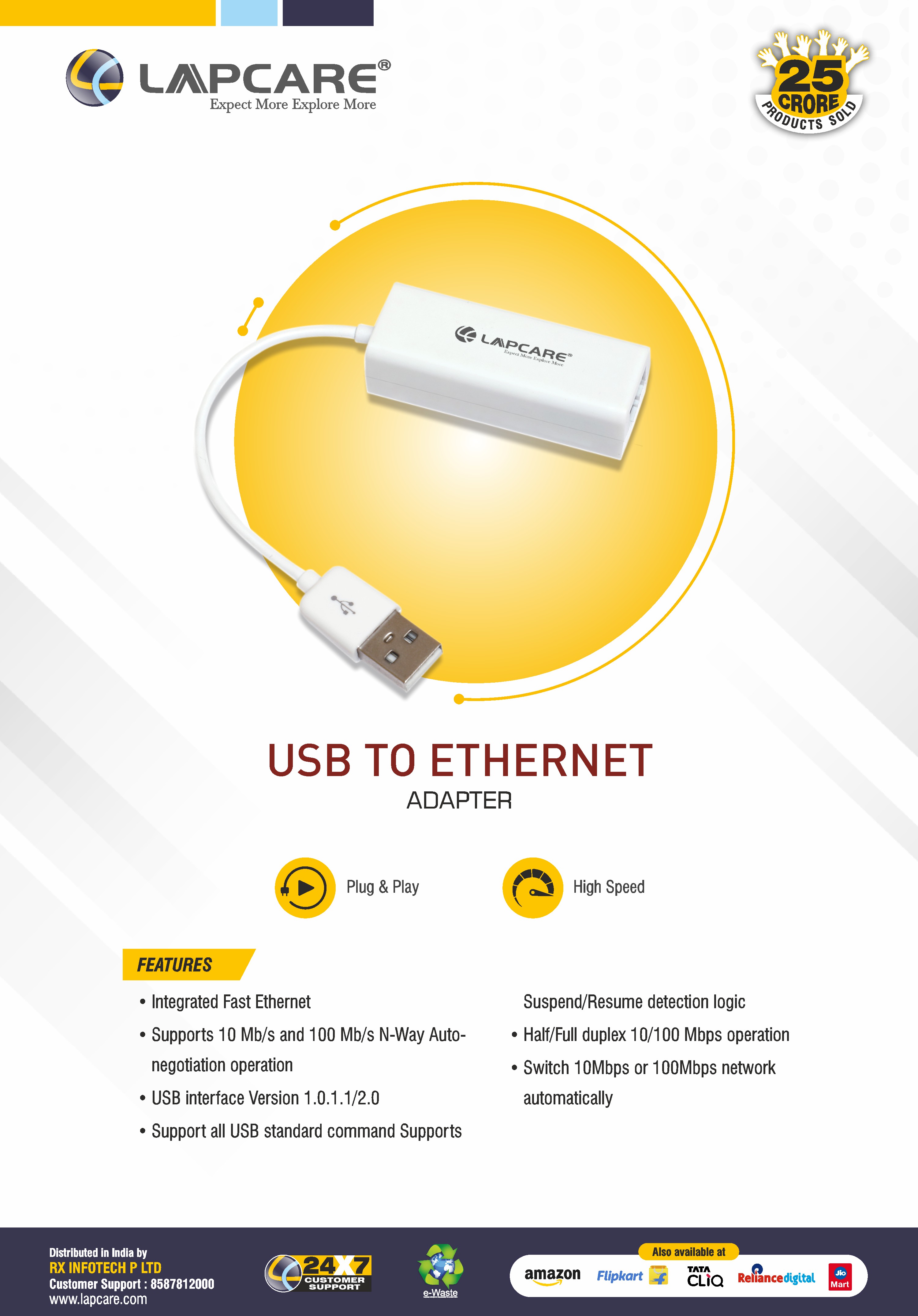 Ethernet | USB Input | 10- 100 Mbps | 15cm Cable length | Plug Play